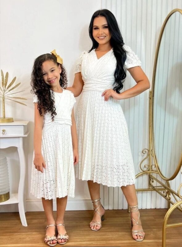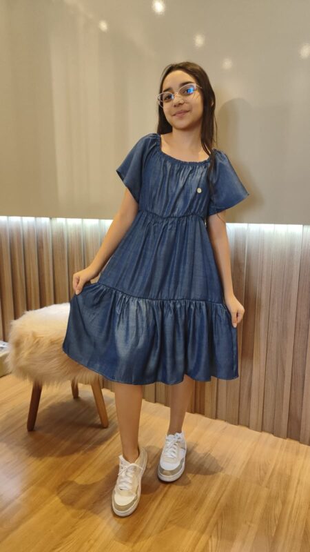 Perfeito para ocasiões especiais, esse vestido combina estilo e praticidade, permitindo que as meninas brilhem com elegância.