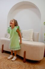 Vestido Infantil com Detalhes em Renda – Modelo Trapézio