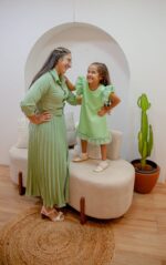 Encante-se com esse vestido delicado e cheio de charme! Com modelagem trapézio, ele garante conforto e elegância para as pequenas em qualquer ocasião. Os detalhes em renda nas mangas e barras dão um toque romântico e sofisticado ao look.