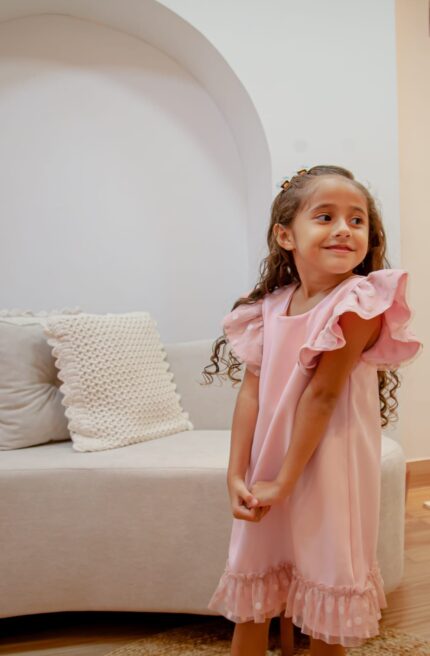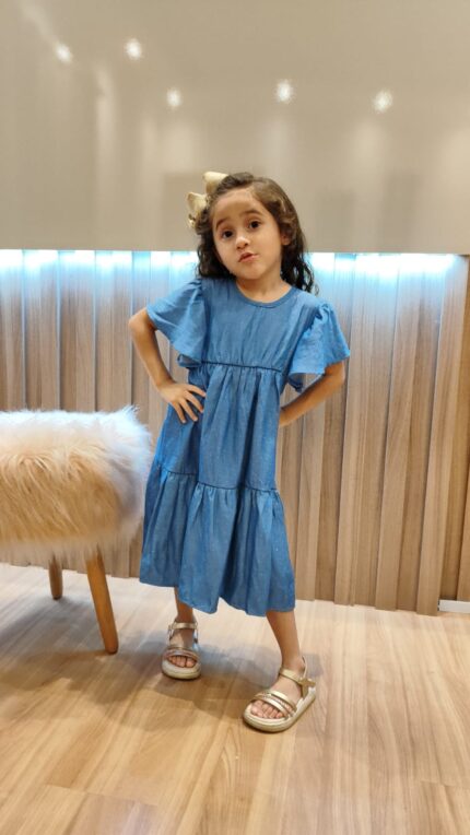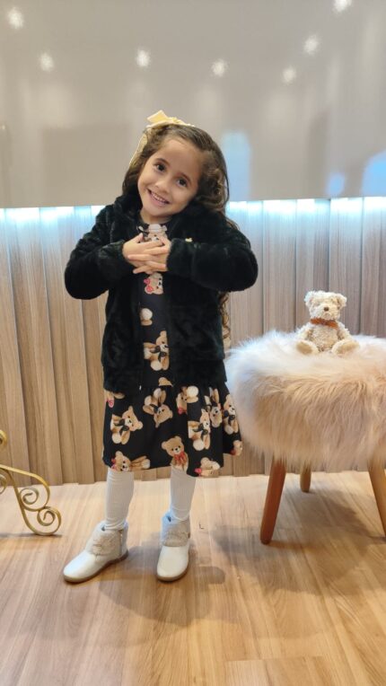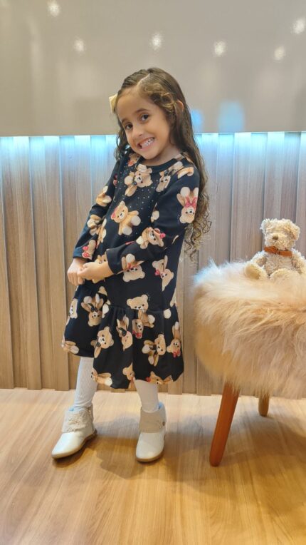 O detalhe especial está no glitter, que traz um brilho encantador ao vestido.