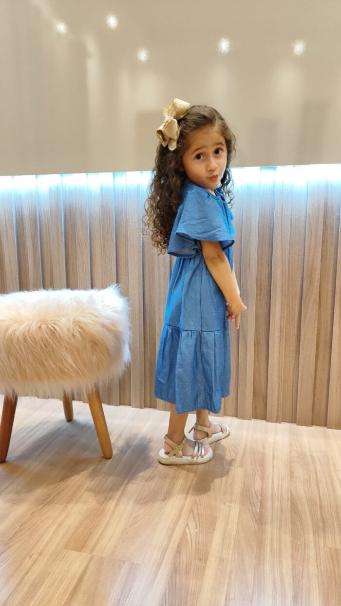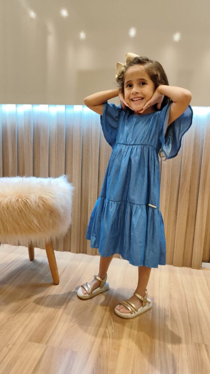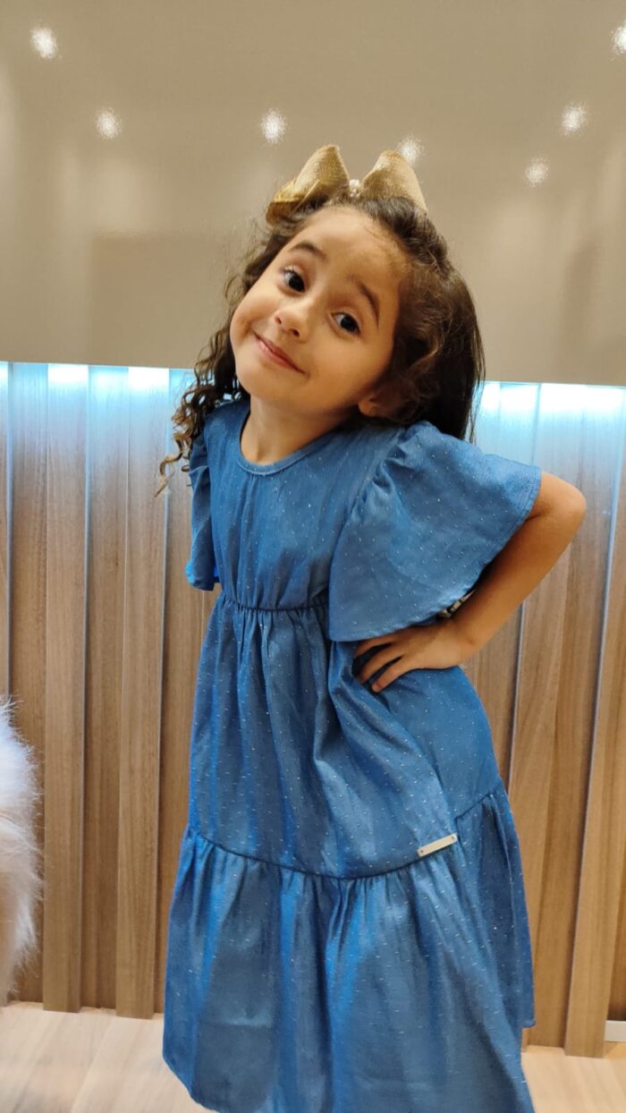 O detalhe especial está no glitter, que traz um brilho encantador ao vestido.