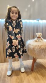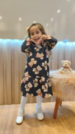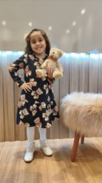 Vestido Infantil com babado no barrado – Modelo Trapézio e estampa de Ursos 🐻