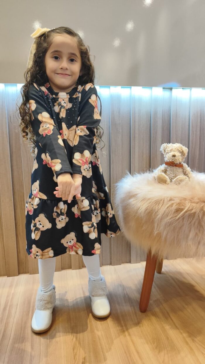Vestido Infantil com babado no barrado – Modelo Trapézio e estampa de Ursos 🐻